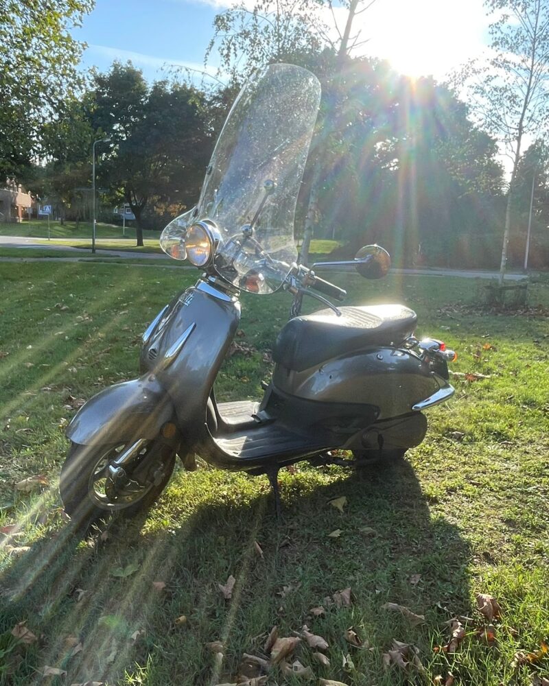 De meeste NoNoiz scooters hebben een windscherm. Het grote voordeel is dat je veel minder nat wordt als het regent en je uit de wind zit tijdens het rijden. Wat wel lastig kan zijn is als er zon schijnt. Soms zie je dan de weg en het overige verkeer niet goed. Een windscherm heeft normaal geen effect op de maximale snelheid; maar wel op het verbruik van de stroom uit je batterij.